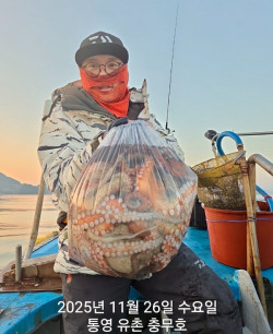 11월 26일(수) 전투 #철수조황수요일 선상 전투낚시 철수조황입니다.오전에는 따문따문 올라와 다소 답답한 흐름이었지만,오후에 날씨가 도와주면서 입항 전부터 피딩이 받쳐줘마리수까지 보태고 들어왔습니다.개인차는 있지만 오늘 문어는 씨알도 좋고,피딩 덕분에 마리수까지 완벽했네요.오늘도 다들 고생 많으셨습니다.내일은 휴항하며, 금요일은 문갑이로 출조합니다.#예약문의(사무실)010-9334-0746 예약현황은 수시로 업데이트 되니 아래 링크에서 확인하세요.[예약현황]https://band.us/band/62820210/post/6226 *더 많은 영상과 이벤트, 새로운 소식이 궁금하시면 충무호 밴드로 놀러오셔요!!!!![통영 유촌 충무호] https://band.us/@cm6888 *** 통영 충무호 예약 안내 ***예약문의 : 010-9334-0746오시는길 : 경남 통영시 도산면 저산유촌길 105홈페이지 : https://chungmu.sunsang24.com/
