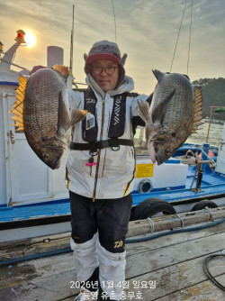 1월 4일(일) 카고 감성돔 #철수조황선상 카고 감성돔 철수조황입니다.55,52,51… 오늘 5짜로 손맛 제대로 보고 철수했습니다.내일 2자리 남아 있으니 문의 주세요.[예약현황]https://band.us/band/62820210/post/6469 *** 통영 충무호 예약 안내 ***예약문의 : 010-9334-0746오시는길 : 경남 통영시 도산면 저산유촌길 105홈페이지 : https://chungmu.sunsang24.com/